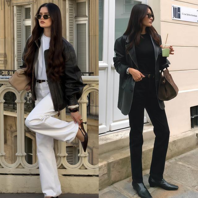 “皮衣+牛仔裤”这个组合今年春天又火了,而且火得比前几年都凶。满街的时髦女生都在这么穿,黑皮衣+浅蓝牛仔裤、棕皮衣+直筒裤,清一色的复古港风路线,好看得让人很难忽略它。