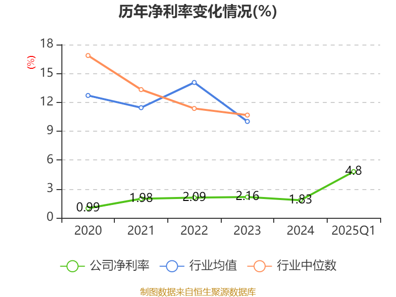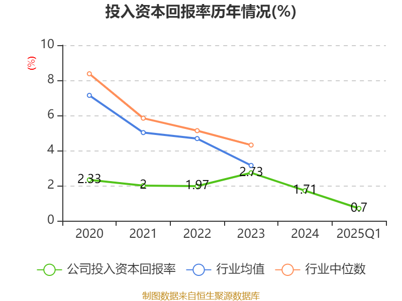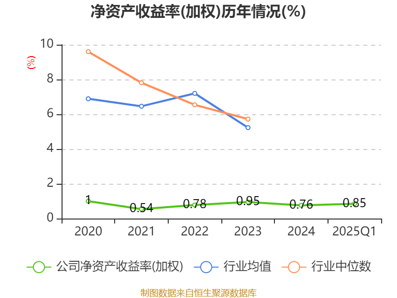 盈利能力方面, 2025年一季度公司加权平均净资产收益率为0.85%,同比上升0.01个百分点。公司2025年第一季度投入资本回报率为0.7%,较上年同期下降0.06个百分点。