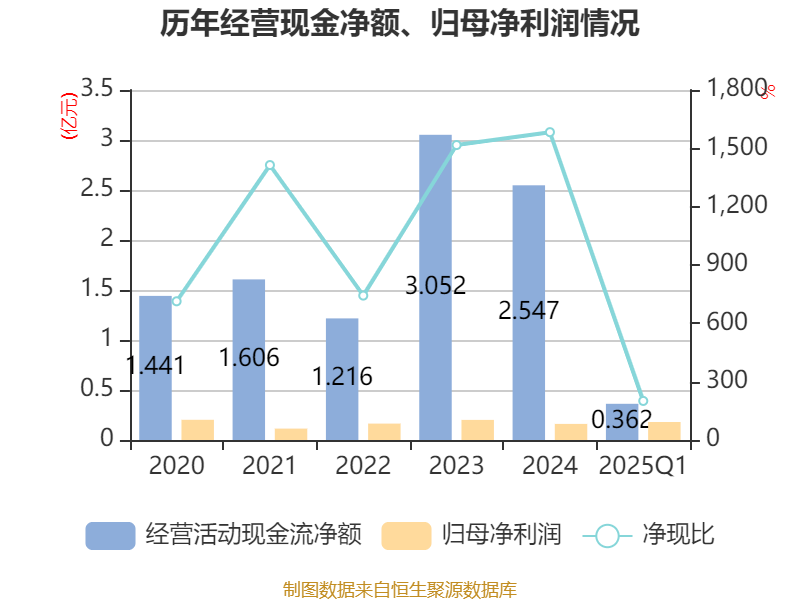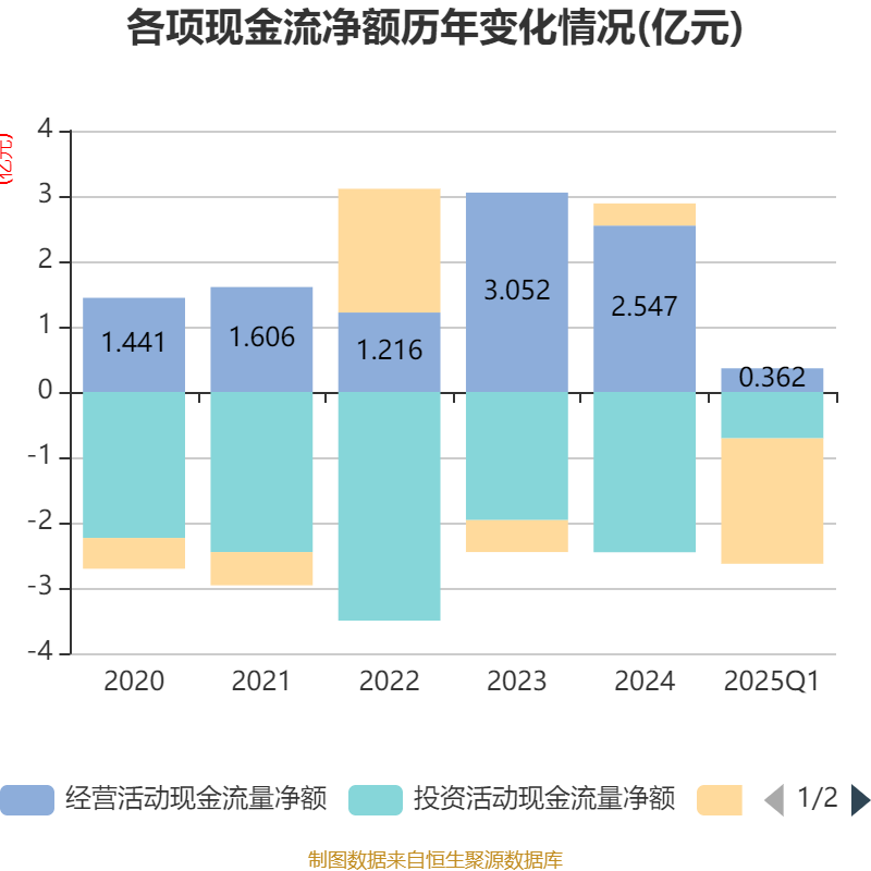 截至2025年一季度末,公司经营活动现金流净额为3622.58万元,同比增长9.56%;筹资活动现金流净额-1.92亿元,同比减少1.71亿元;投资活动现金流净额-7100万元网上股票配资开户,上年同期为-2760.1万元。