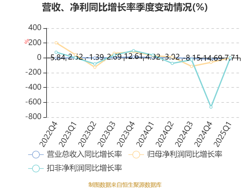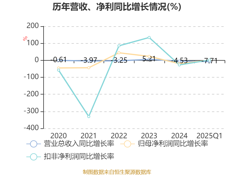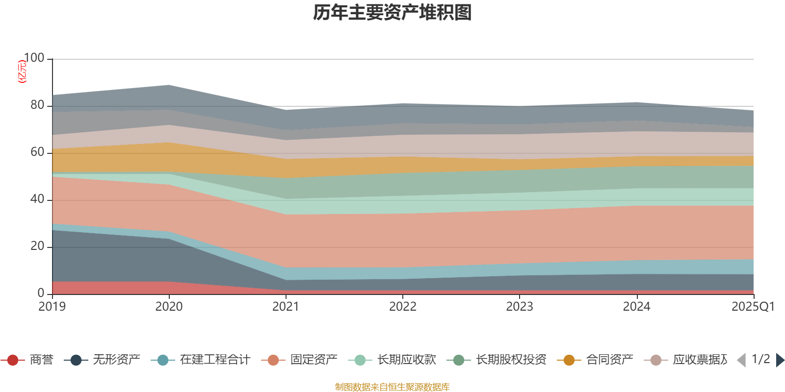 资产重大变化方面,截至2025年一季度末,公司货币资金较上年末减少49.08%,占公司总资产比重下降2.66个百分点;在建工程合计较上年末增加8.01%,占公司总资产比重上升0.92个百分点;固定资产较上年末减少1.71%,占公司总资产比重上升0.75个百分点;长期股权投资较上年末增加0.69%,占公司总资产比重上升0.6个百分点。