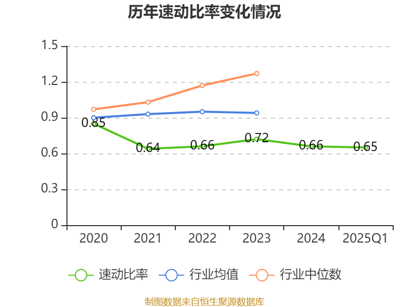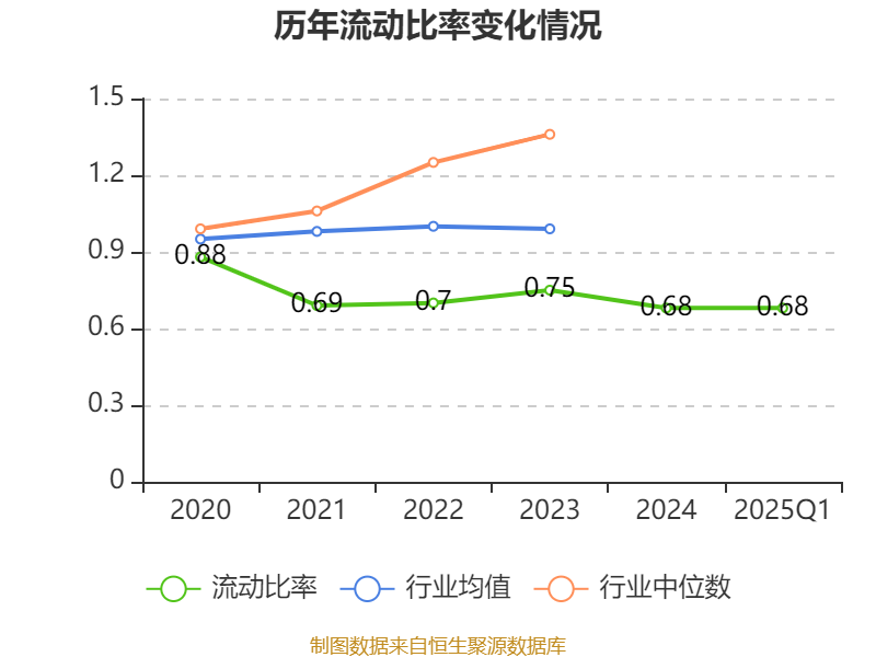 2025年第一季度,公司流动比率为0.68,速动比率为0.65。