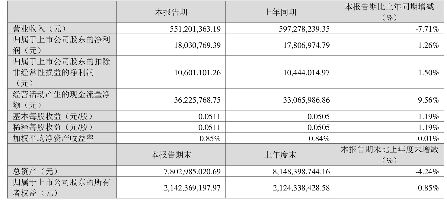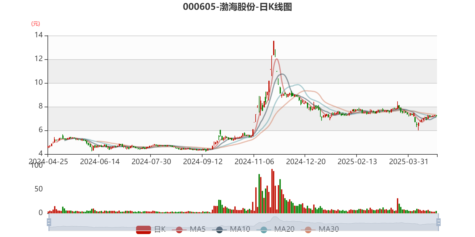 中证智能财讯渤海股份(000605)4月25日披露2025年第一季度报告。公司实现营业总收入5.51亿元,同比下降7.71%;归母净利润1803.08万元,同比增长1.26%;扣非净利润1060.11万元,同比增长1.50%;经营活动产生的现金流量净额为3622.58万元,同比增长9.56%;报告期内,渤海股份基本每股收益为0.0511元,加权平均净资产收益率为0.85%。