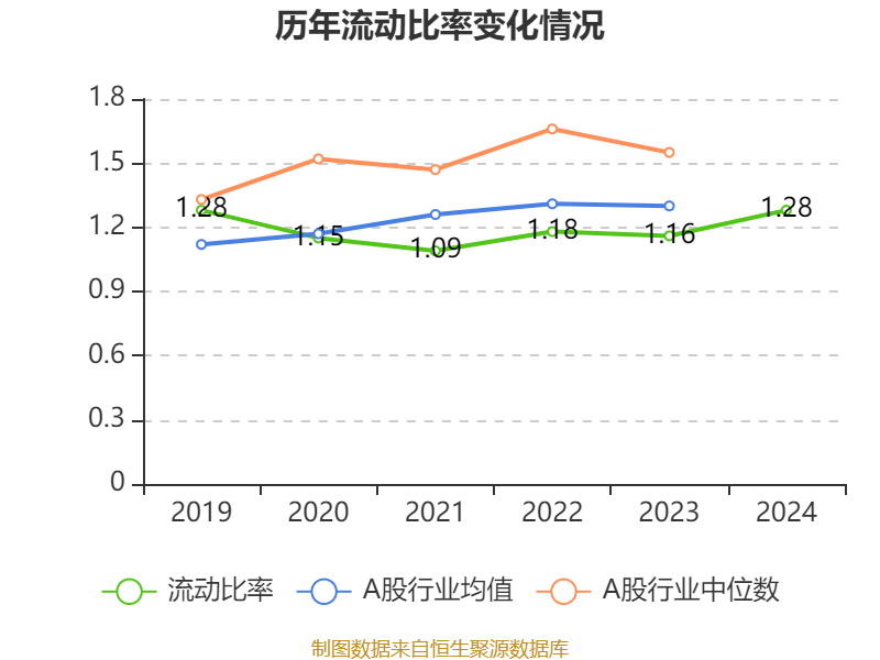 2024年,公司流动比率为1.28,速动比率为1.06。