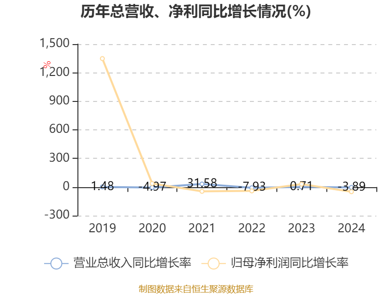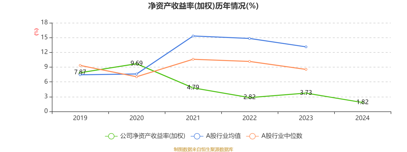 数据显示,2024年公司加权平均净资产收益率为1.82%,较上年同期下降1.91个百分点。